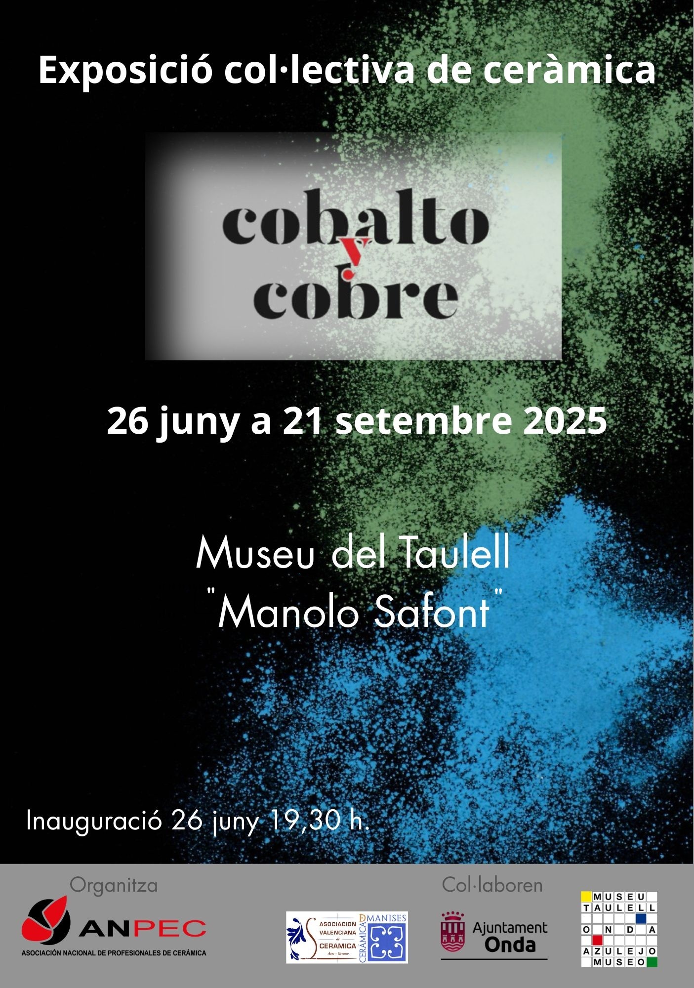 “Cobalto y Cobre” es una exposición Colectiva organizada por ANPEC en la que participan 65 artistas con obras de estilo tradicional y contemporáneo, inspirándose en un auténtico homenaje a los pigmentos óxidos colorantes por excelencia en la cerámica y que tanto se han hecho servir a lo largo de la historia.